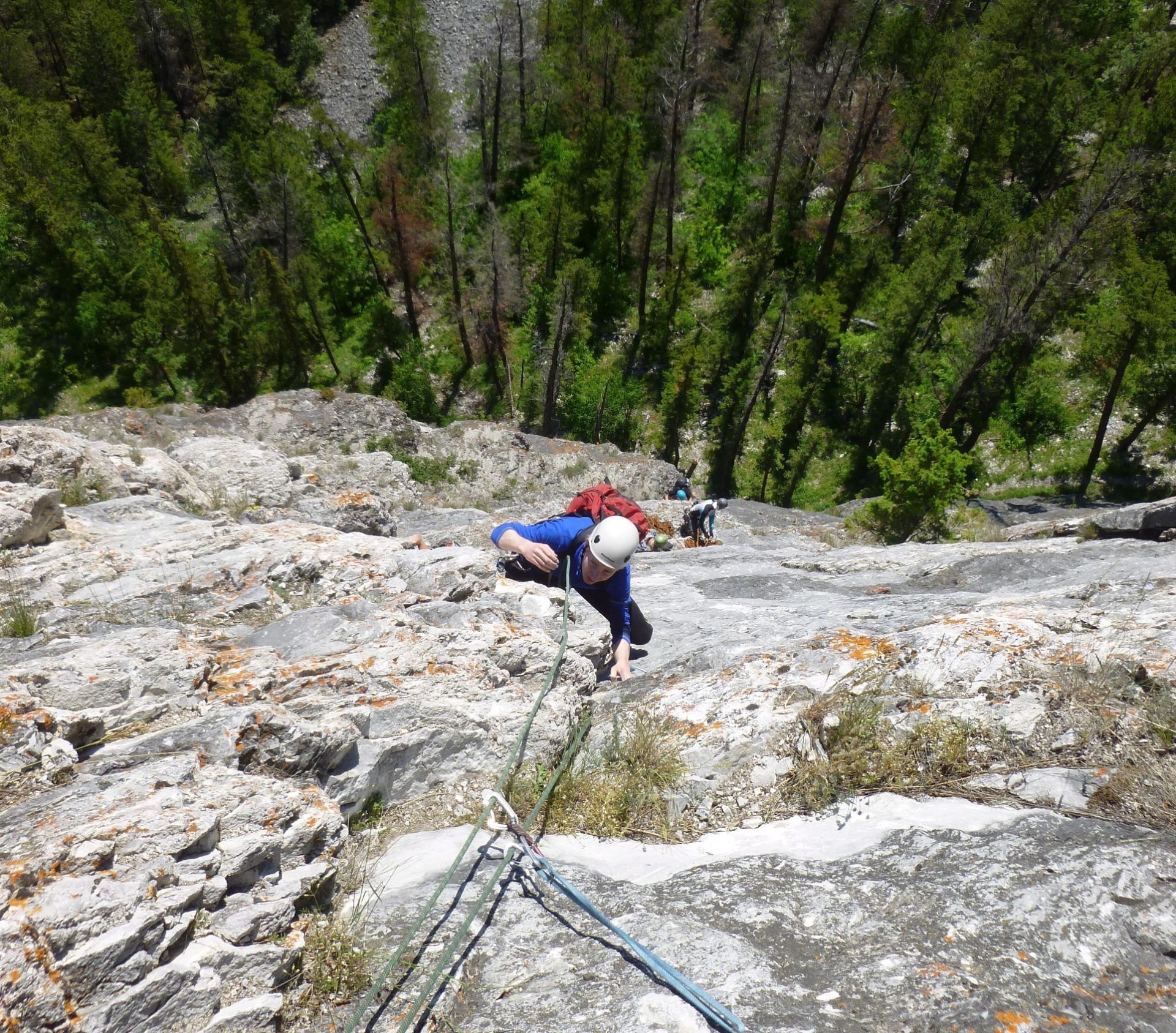Day one, we headed to Grassi…covered all the basics of sport climbing, belaying a leader, cleaning sport routes and of course leading and some falling!