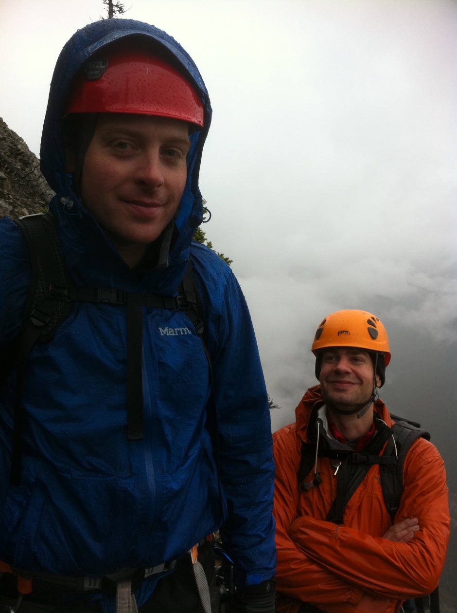 The next morning, the skies still looked a bit ominous, but the forecast seemed slightly improved. We headed in again with a new group of alpinists and this time despite getting a few good doses of heavy rain and hail, managed to complete the route! 14.5 hours car to car…definitely didn’t break any speed records, but everyone led the whole way up and hopefully learned a few new ways to deal with ridge climbing and safely managing hard to protect sections.
