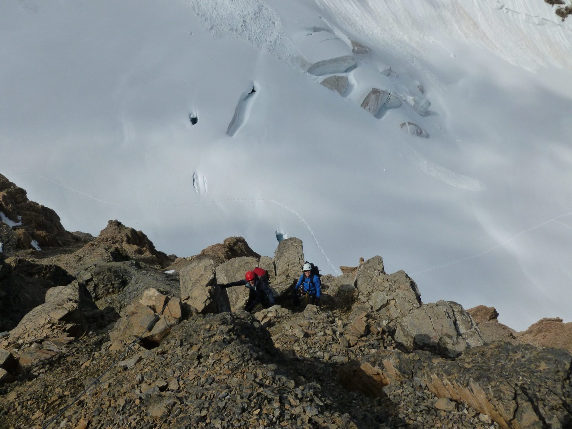 As we headed back down the glacier the bridges were starting to sag and we had one exciting poke through. Back to the col, we decided to bag another peak and scrambled up Boundary as well!