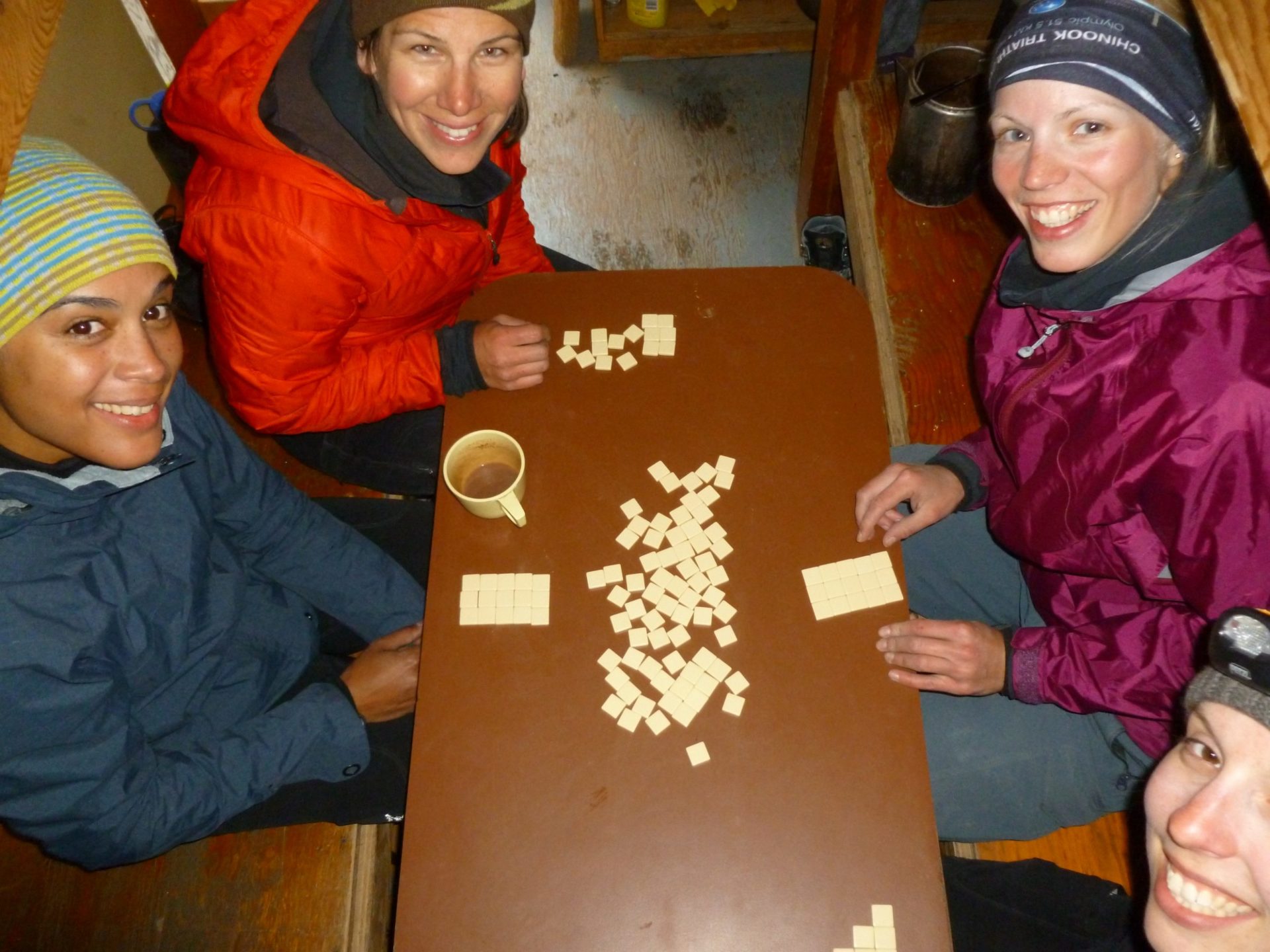 We still managed to squeeze in some skills, gear placement and anchor building and most importantly got in a few rounds of my new favorite game…bananagrams! Thanks Jenna:) Somehow we all made it work in that little hut and had a great meal and then packed ourselves in for a nights sleep.