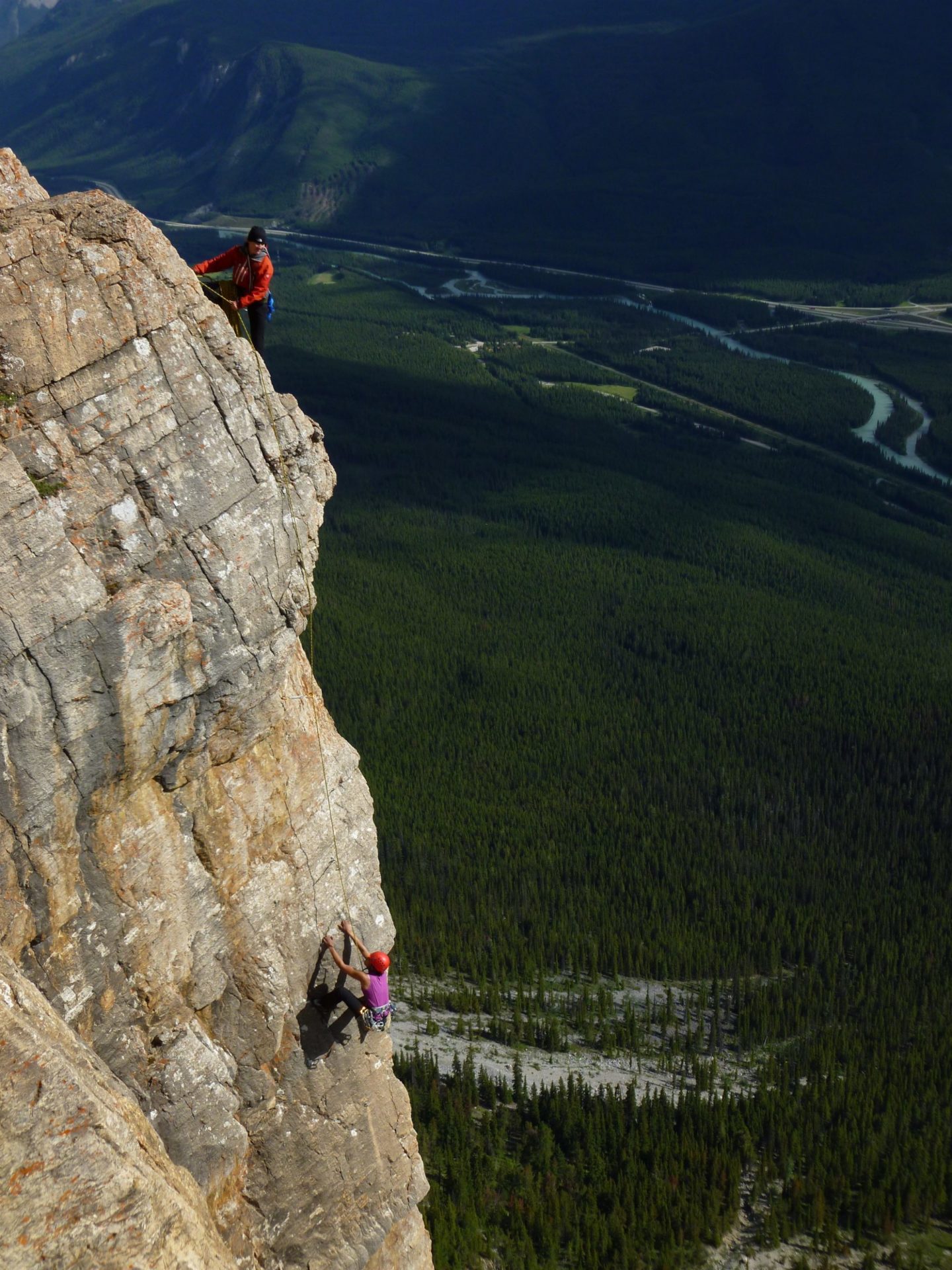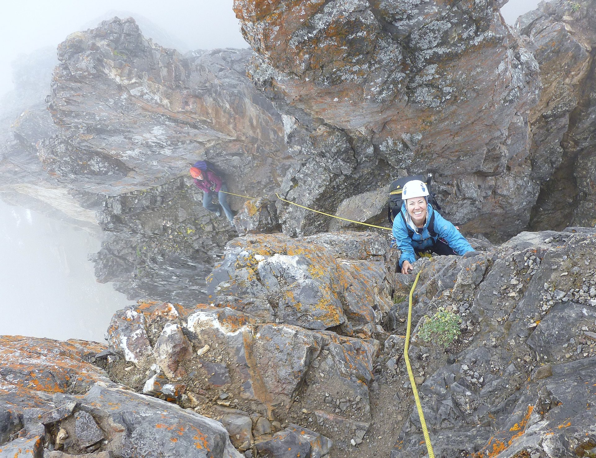 As we sat out and enjoyed our views some bolts on the prow right outside the hut were discovered. Sure enough there was a set of anchors at the top that I could not possibly ignore…and soon brave Susan and then Claire were being lowered down to try the climb. What an amazing setting. We felt like a bunch of paparazzi shooting non stop as it looked so spectacular!