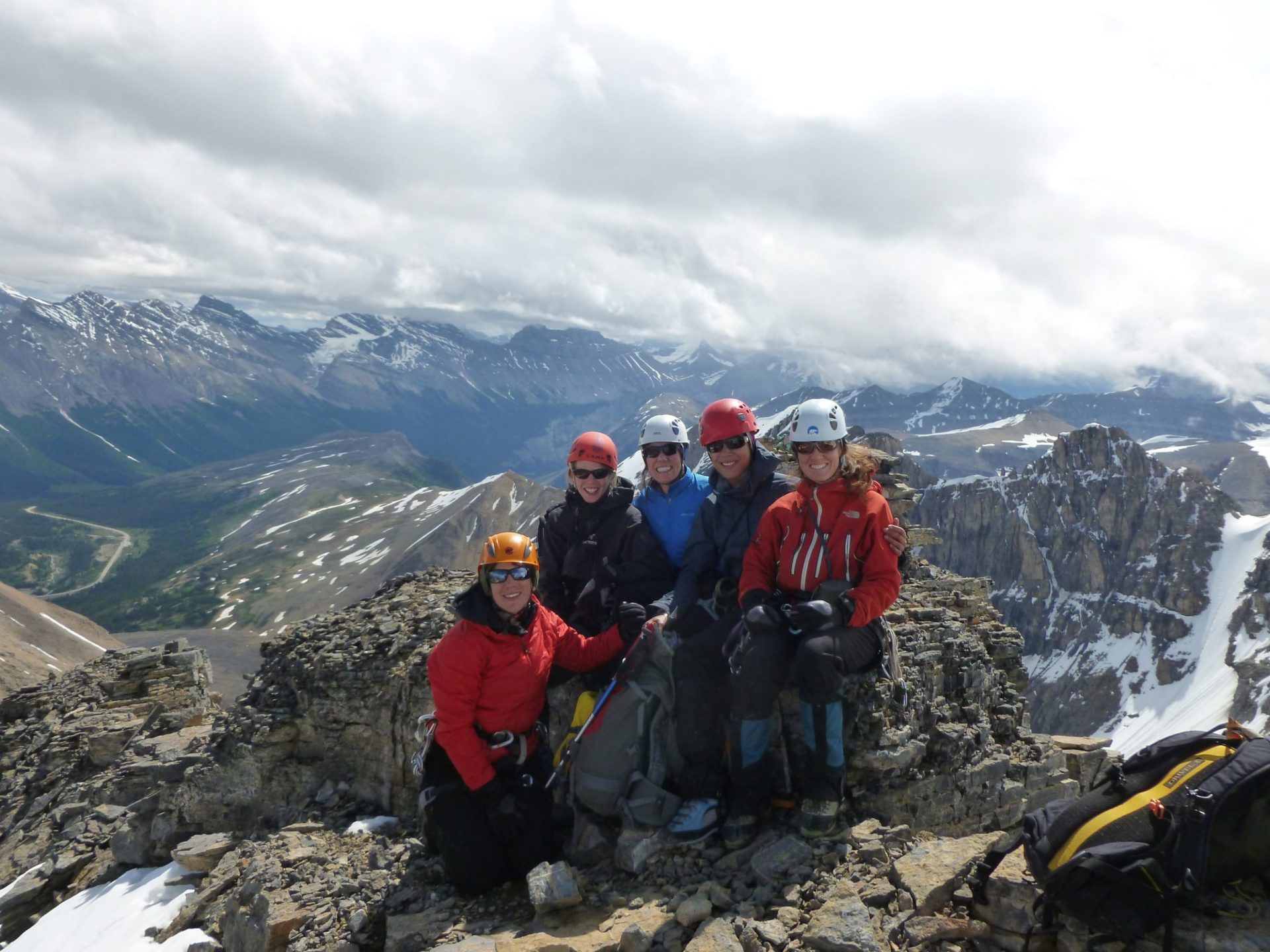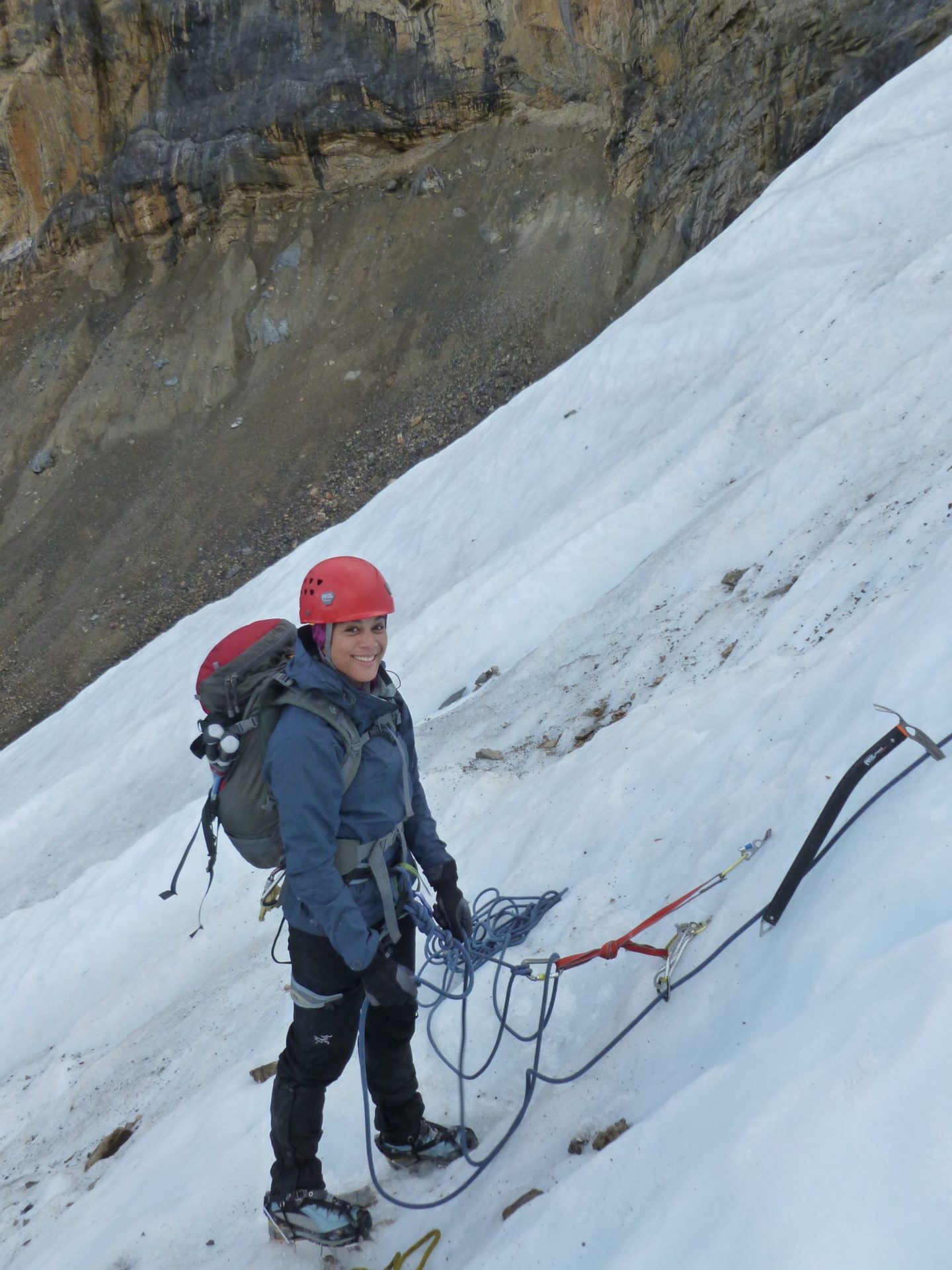 We just returned from a fabulous week in the mountains with 4 keen and aspiring alpinists. Wasn’t the worlds best weather but somehow we managed to get quite a bit done! Starting in the Icefields, we spent a bit of time in the cook shelter going over skills as the weather decided which way it would turn. As luck would have it, we managed to get out by noon and make our way to the Athabasca north glacier to really practice some skills. Some cramponing, ice anchors, glacier travel and ice pitching was put into practice and as we left we felt ready to take on A2 the next day.
