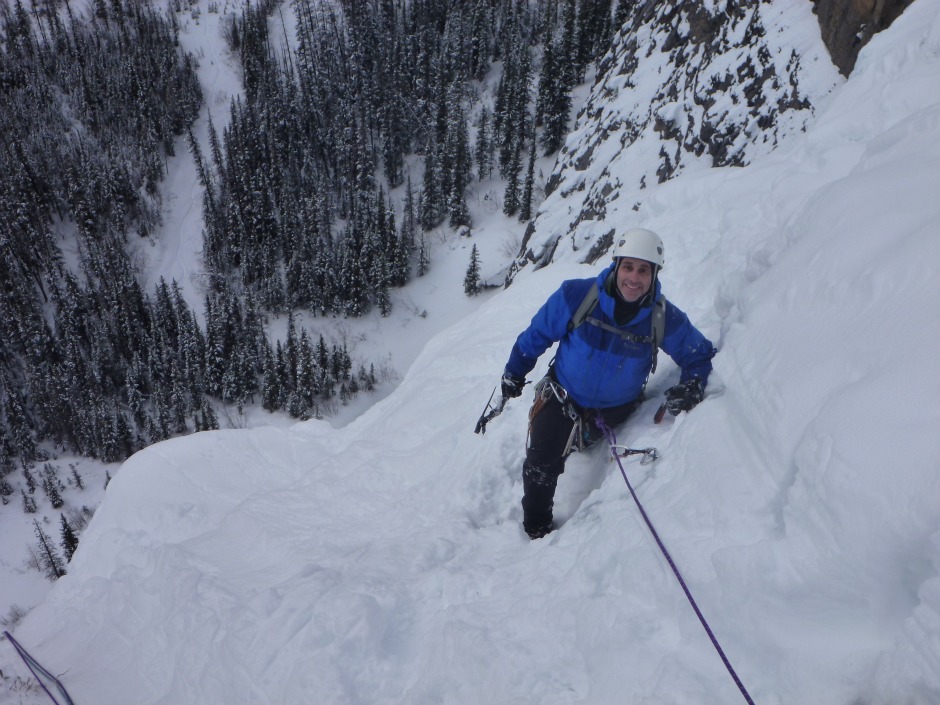 This morning we left Banff at 6:30 unsure which mega classic to hit up…Murchison or Right Hand Weeping Wall…but as we reached the approach entrance to Murchison and saw very snow covered tracks and a temperature reading of -25 we opted to continue on to the weeping wall. As luck would have it one car was already in the parking lot…and yes, they too wanted to climb the right hand side. We got motivated quickly (although part of me would have been psyched for the easier left hand side!) and headed out into the brisk morning to embark on this amazing climb.