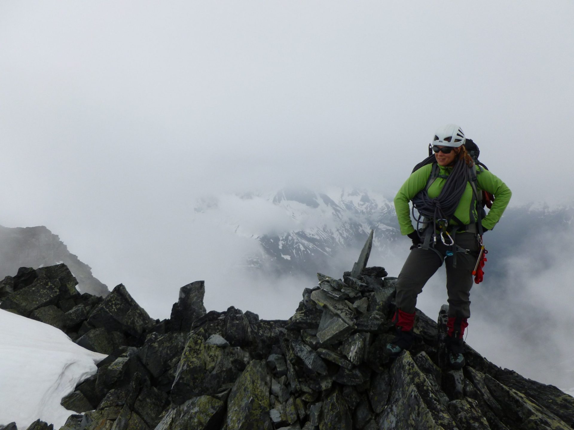 The next morning, after all 8 of us slept in the little hut, we awoke to some promising weather! We got up early, packed up and headed out! We cruised up Castor, and then did some rope work to get up Pollux and Leda right as the weather moved in us yet again!