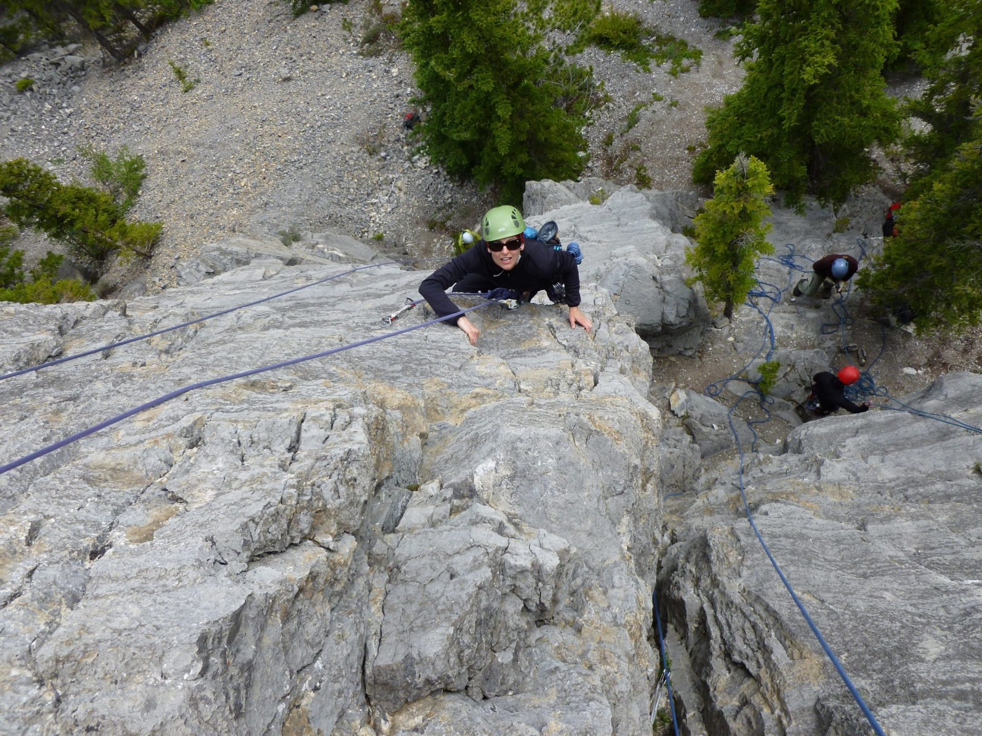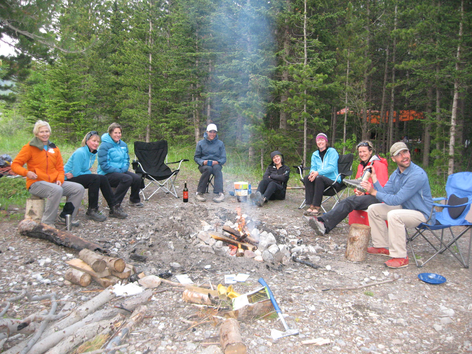 Some surprisingly high water on some of the trails….we felt like moose! Once again everyone returned from the day on a high. Andrea and Diane both led two trad lines and the other two groups had fun on 3 star classic multipitch routes. Stories were shared around the fire as Kris amused us all with his attempt at removing a cork from a wine bottle by hitting it against a tree. Hmm one needs to question what they see on U-tube…